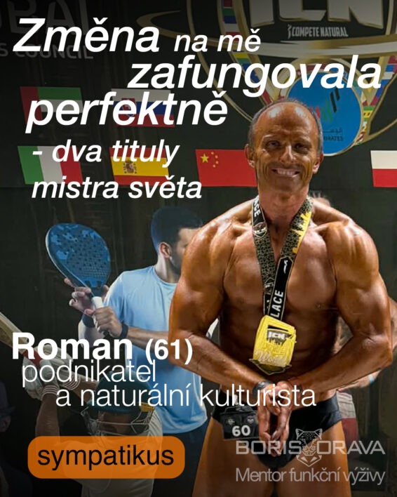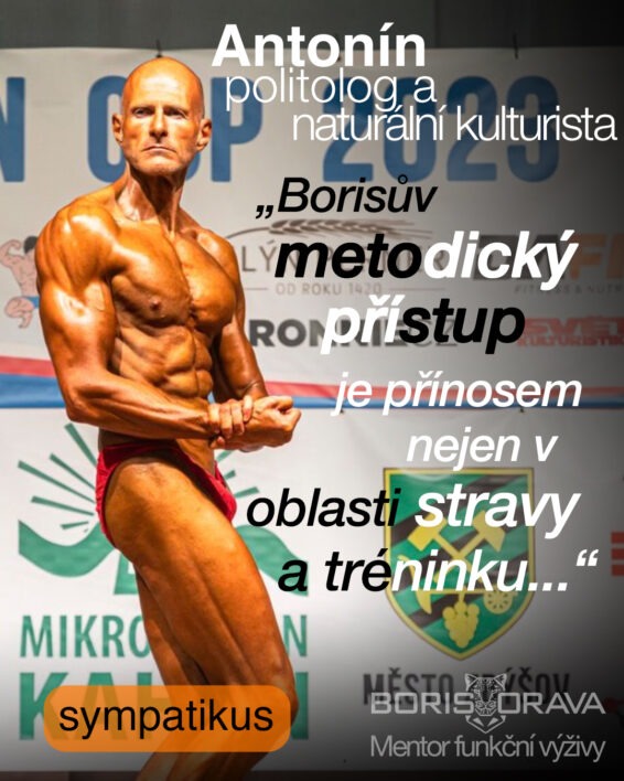 Celý život cvičím, závodil jsem za mlada do 37 let, po 22 letech jsem se vrátil. Léta jsem v rámci výživy používal zajeté postupy a principy. Boris mě vnesl do výživy nový směr podle mého metabolického typu a nejen, že se mě příprava vydařila výborně, ale dieta nebyla tak náročná jako v minulých letech. Změna na me zafungovala perfektně.