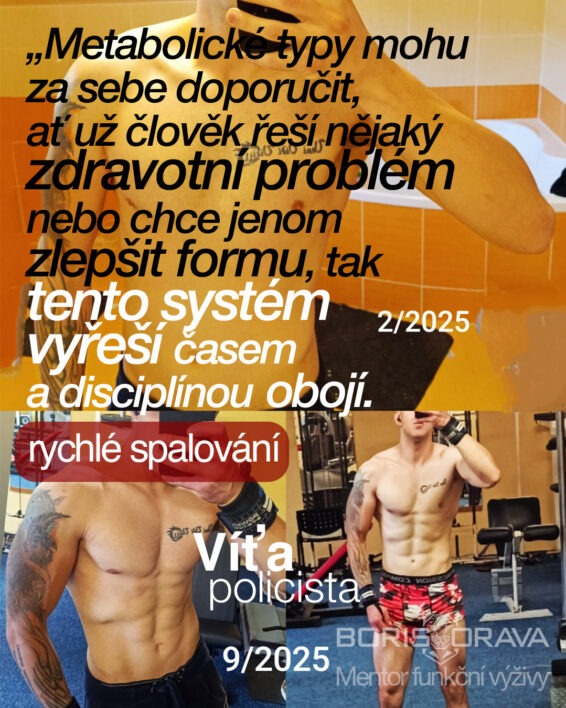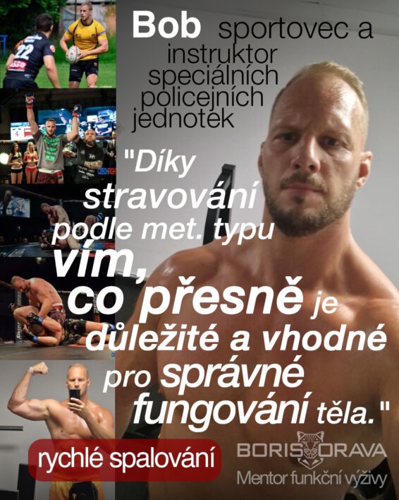 Navázal jsem s Borisem spolupráci, abych se posunul dál, a to se podařilo ve všech směrech! Stravování podle metabolického typu mě posunulo na jinou úroveň, co se psychické i fyzické stránky týče. V tréninku mám větší sílu a vytrvalost, protože mi Boris pomohl přijít na to, co moje tělo doopravdy potřebuje a na čem profituje. Stravování podle metabolického typu je funkční, jednoduchá a komplexní cesta ke zdravému tělu i duchu.