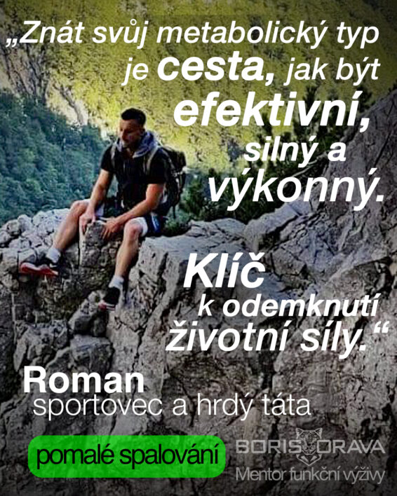 Boris mi svoji přednáškou o metabolických typech dokázal objasnit mé pocity a odpovědět na otázky. Změnil jsem poměr makroživin a vyladil detaily ve výběru jednotlivých potravin. Cítil jsem hned zlepšení ve fyzické i psychické síle. Jednoduše každý jsme jiný, každému jede tělo na jiné palivo. Když poznáš na jaké jede to tvoje, máš vyhráno.